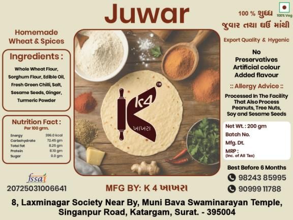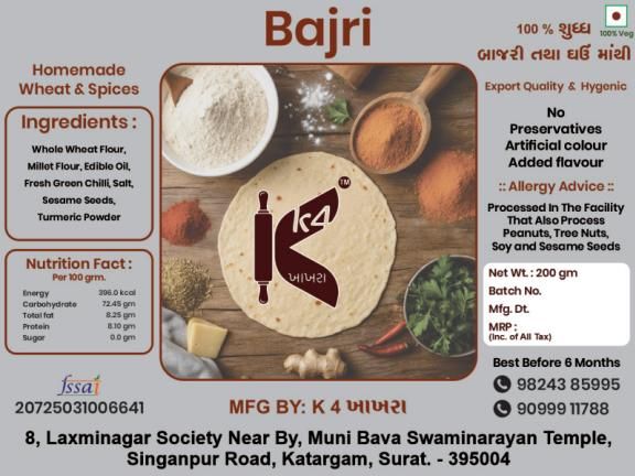 Leading Manufacturers and Wholesaler of Healthy Bajri Millet Khakhra, juwar sorghum khakhra, Nutritious Ragi Nachni Khakhra and Pure Plain Wheat Khakhra from Surat.