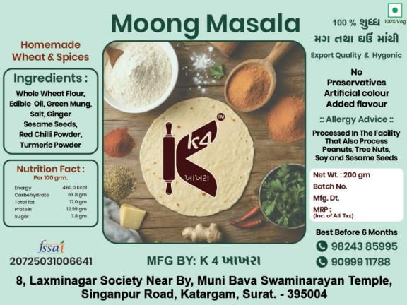 Leading Manufacturers and Wholesaler of Classic Methi Masala Khakhra, Jeera Cumin Masala Khakhra, Traditional Moong Masala Khakhra and Traditional Mangroli Masala Khakhra from Surat.